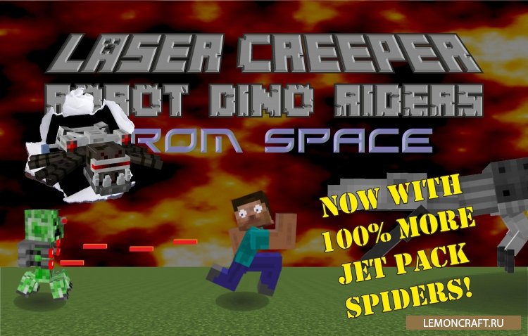 Мод Laser Creeper Robot Dino Riders добавит в игру 3 новых моба: робод динозавр в седле которого будет сидеть лазерный криппер и паук дрон, который умеет летать. По непроверенным данным эти мобы были посланы инопланетными существами, что бы захватить ваш мир. Мобы выглядят очень классно и при этом очень опасны. В виде дропа вы сможете получить лазерную винтовку, реактивный ранец и крипер базуку. Данных мобов можно использовать в качестве средства для передвижения.